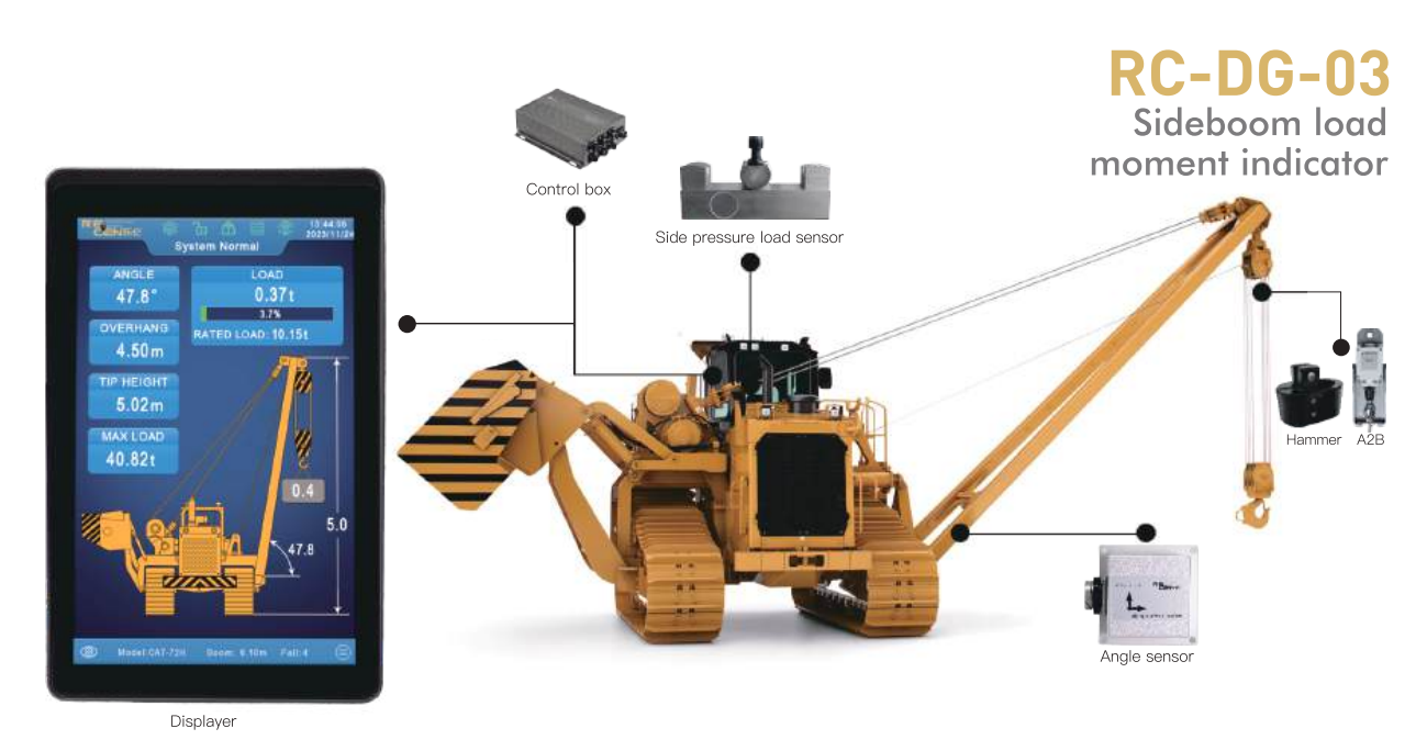 The DG-03 is our company’s third-generation safety load indicator specifically designed for pipelayer. It offers 4G remote monitoring and assistance capabilities, allowing users to monitor real-time crane operation and remotely control the screen using a smartphone or computer. This feature makes on-site setup and management significantly easier by enabling remote calibration and data adjustments.